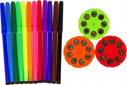 A tároló fióknak köszönhetően könnyű rendben tartani a kreatív teret és minden szükséges eszközt kéznél tartani. A termék 12 színes filctollal és 3 különböző képsablonnal ellátott lemezekkel van felszerelve.