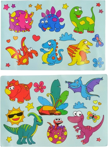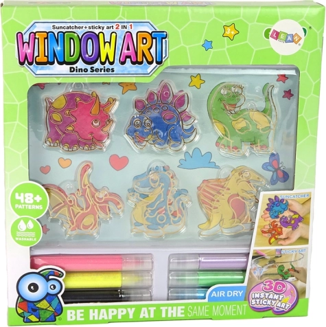 A csomag gazdag választékot kínál dinoszaurusz sablonokból, amelyekkel a gyerekek egyedi 3D üvegfestéseket készíthetnek, és ötletes motívumokkal díszíthetik az ablakokat vagy tükröket.
