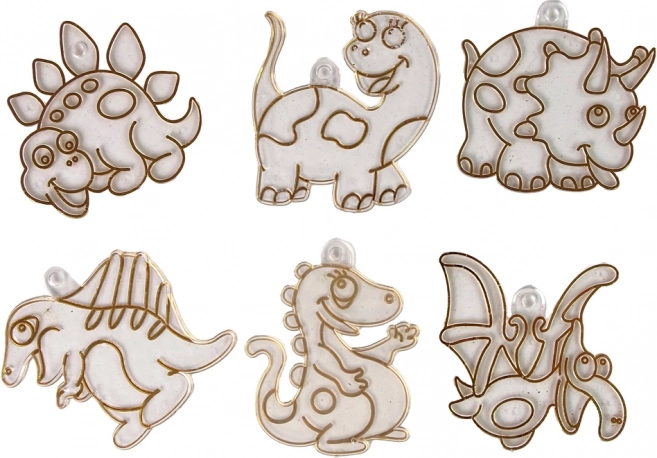 A csomag tartalma 6 átlátszó, akasztós tapadókorong és 6 dinoszauruszos üvegfestmény-dísz. Fúrás és ragasztó nélkül könnyen rögzíthetők a sima felületekre.