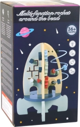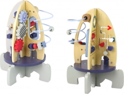 Fából készült oktatórakéta gyöngylabirintussal és fogaskerekekkel