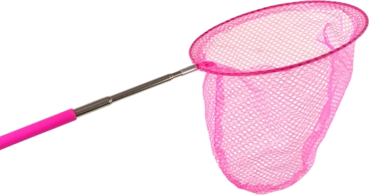 Könnyű és kompakt rózsaszín háló gyerekeknek és hobbikedvelőknek, amely megkönnyíti a lepkék, szitakötők és apró halak befogását. A teleszkópos nyél akár 85 cm-es elérése segít messzebb nyúlni, a puha habszivacs markolat pedig kényelmes, csúszásmentes fogást biztosít. Ideális strandra, medencéhez és tópartra, játékos természetfelfedezéshez.