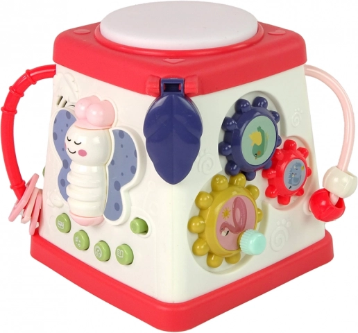 Fedezze fel a szórakoztató és biztonságos játékot a legkisebbek fejlődéséhez – interaktív oktató kockát pillangó motívummal. Kínál fényhatásokat, vidám dallamokat, állathangokat és angol szavakat, amelyek támogatják az érzékelést, a finommotorikát és az első ismerkedést az idegen nyelvvel.