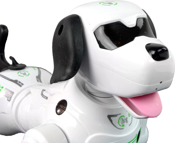 - Interaktív funkciók: ugatás, mozgás, reakció utasításokra, „alvás”, világító szemek.