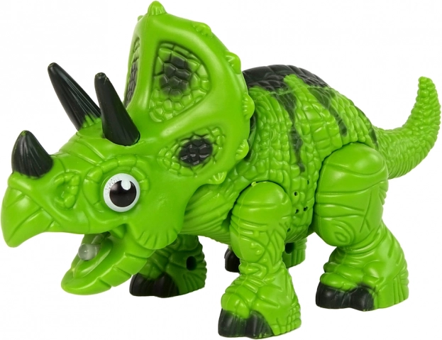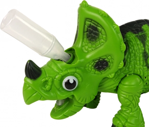 A dinoszaurusz egyszerű felépítésű, így gyermeke könnyedén felfedezheti saját dinóját! A szarvak alatt egy speciális nyílás található, amelybe néhány csepp vizet kell önteni, és a pofából gőz kezd távozni. Ez a funkció teljesen biztonságos a gyermekek számára.