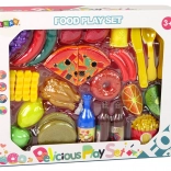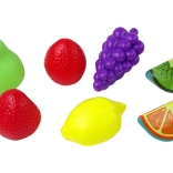 A készlet változatos műanyag gyümölcsöket tartalmaz, többek között körtét, epreket, szőlőt, citromot, egy szelet kivit és narancsot. A valósághű megjelenésű gyümölcsök kiválóan alkalmasak a különböző fajták megismerésére.