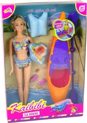 Fedezze fel a remek készletet, amely egy bájos babát tartalmaz, aki készen áll a vízi kalandokra. Színes fürdőruhájával nyári hangulatot áraszt és hosszú szőke haja csodálatosan fénylik a napfényben. A rózsaszín papucs varázst ad a teljes összeállításnak.