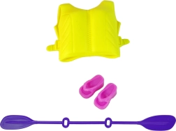 A szett sárga mentőmellényt és lila evezőt tartalmaz, amelyek lehetővé teszik a gyerekek számára, hogy valósághű vízi élményben legyen részük.