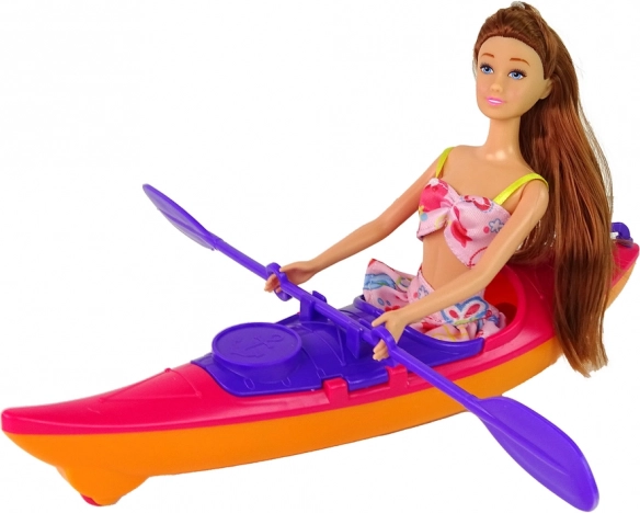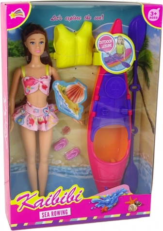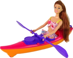 Fedezze fel a kalandozás örömét ezzel a csodálatos babaszettel és kajakkal. A kollekció tartalmaz egy színes strandruhában lévő babát, amely készen áll a vízi kalandokra. A baba hosszú barna haja szépen csillog a napsütésben, és a rózsaszín pántos szandál elegáns megjelenést kölcsönöz. A ragyogó rózsaszín kajak valósághű játékjellemzőkkel bír, mozgatható evezővel és sárga mentőmellénnyel a biztonságos vízi játékért.