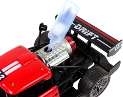 Az 1:16 méretű sport RC autó már első pillantásra magával ragad a markáns dizájnnal és a pipettával utántölthető kipufogó gőzeffekt funkcióval. Menet közben felkapcsolnak az első LED lámpák, így a driftelés és versenyzés élménye még valósághűbb.