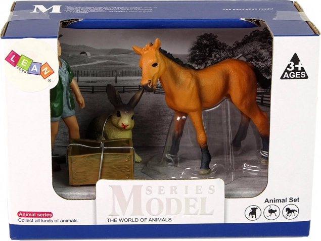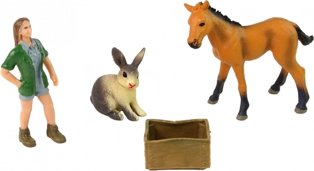 Figurakészlet világos lóval, nyúllal és állatorvossal kreatív játékhoz. Élethű kidolgozás, kemény gumi és nem mérgező anyagok biztosítják a biztonságos szórakozást 3 éves kortól.