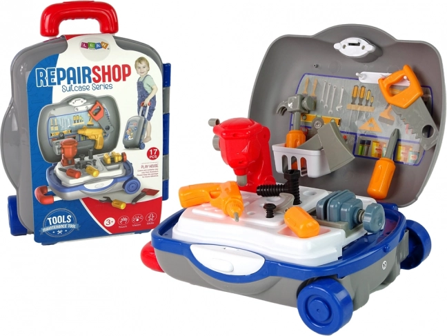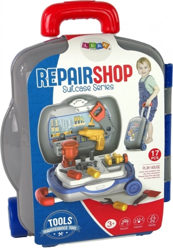 A kerekes szerszámos bőrönd minden gyereket kis szerelővé varázsol. A készlet biztonságos műanyag szerszámokat és munkafelületet tartalmaz, otthoni és utazás közbeni játékhoz. 17 részes készlet, kerekes bőrönd kihúzható fogantyúval és könnyű tárolás fejleszti a kreativitást és a finommotoros készségeket. 3 éves kortól ajánlott, megfelel az EN71 és a CE szabványnak.