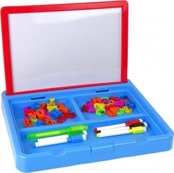 A csomag része egy praktikus, 3 rekeszes tárolódoboz a filceknek, mágneses betűknek és számoknak. A tábla kiváló oktatási segédeszköz az óvodások számára: fejleszti a kreativitást, a koncentrációt és a finommotorikát, a mágneseknek köszönhetően pedig segít az ábécé és a matematika megismerésében.