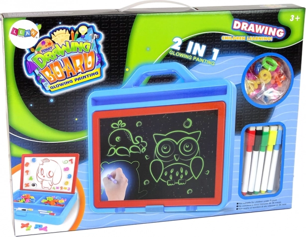 Ez a gyerekeknek készült tábla játékos módon támogatja a fantáziát és a tanulást. A LED filccel a gyerekek a speciális panelen ragyogó képeket alkotnak, amelyek félhomályban szó szerint életre kelnek. A másik oldal fehértáblaként szolgál törölhető filcekkel történő íráshoz és rajzoláshoz, így a betűket, számokat és az első műveleteket újra és újra gyakorolhatják.