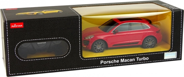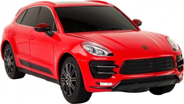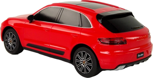Részletgazdag kidolgozású Porsche Macan Turbo 1:24 méretarányban, elegáns piros fényezéssel és sötétített ablakokkal – első pillantásra magával ragadó.