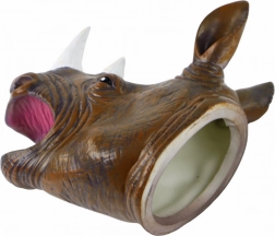 Ez az orrszarvú kézbáb rendkívül élethű hatást kelt: kifejező fekete szemekkel, precízen formázott szarvakkal és bőrt idéző, strukturált felülettel rendelkezik. A puha gumi kellemes fogású, és megkönnyíti az állkapocs és a mimika irányítását, így minden mesélés élő színházzá válik.