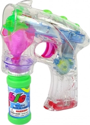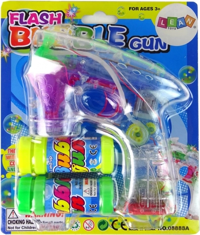 A szórakozás indítása egyszerű – finoman nyomd meg a rózsaszín gombot, és máris előtűnnek a színes szappanbuborékok. A gomb megnyomása után a pisztoly felvillan, színes fénnyel tölti meg a teret, és varázslatos hangulatot teremt.