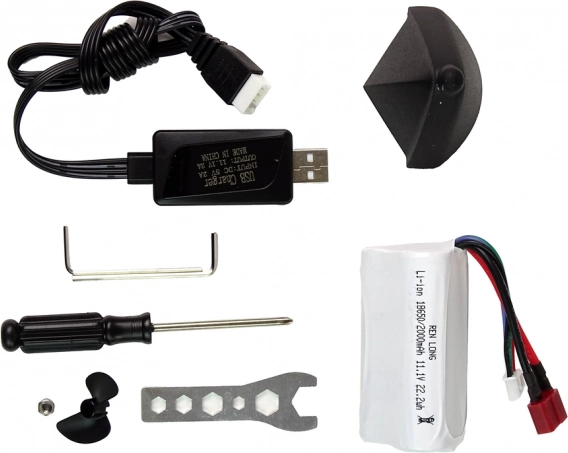 A csomagban USB-s töltésű akkumulátor, karbantartó eszközök, állvány, pótcsavar és ütközésvédő burkolat is található a biztonságos hajózáshoz.