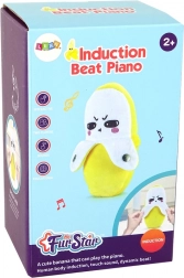 Aktiválás után és az ezüst gomb megérintésére a banán vidám dallamokat játszik – klasszikus és népszerű dalokat, amelyek a gyerekeket a hangok felfedezésére ösztönzik.