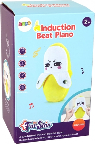 Aranyos interaktív plüss banán 22 cm-es méretben, amely vidám dallamokkal és érintésre induló szórakozással örvendezteti meg a gyerekeket. A ezüst gomb megnyomására vidám dalok szólnak, az elülső gombokkal pedig különálló hangokat lehet lejátszani. Puha, ölelni való, alapsárga színben, és ideális ajándék 2 éves kortól.