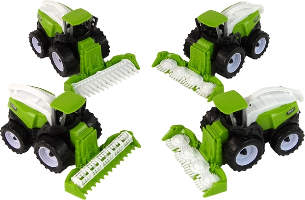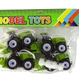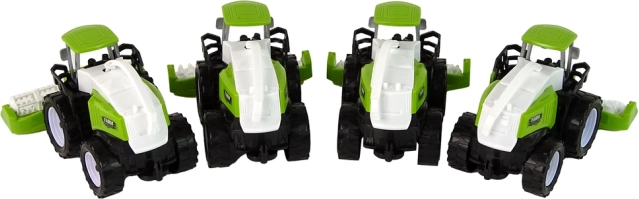 Négy darabos traktor készlet realisztikus zöld színben, ami a mezőgazdasági gépek kis rajongóinak készült. Realisztikus dizájn és funkcionális részletek adnak kreatív játék lehetőséget a gyerekek számára. Tartós műanyagból készültek, ezek a játékok hosszantartó szórakozást garantálnak. Minden traktor mérete 16 cm x 11 cm x 9 cm, könnyen kezelhető és kombinálható mezőgazdasági eszközök utánzataival.