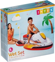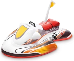 Szórakoztató és biztonságos gyerek felfújható vízijármű robogó formában a INTEX márkától, amely stabilitást, kényelmes ülést és praktikus kapaszkodót a biztos fogáshoz kínál. A széles kialakításnak köszönhetően játék közben nem borul fel, könnyen felfújható, leeresztve pedig strandtáskába is befér. Ideális medencébe, tóhoz és nyugodt vizekre.