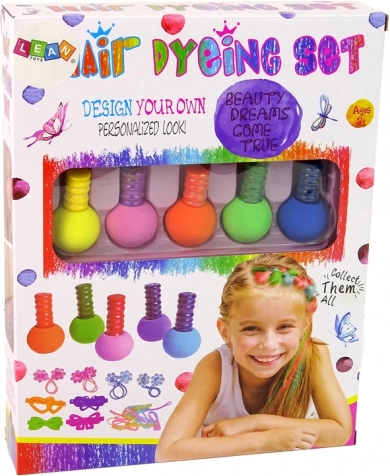 Készítsen színes tincseket és játékos frizurákat pillanatok alatt. A készlet tartalmaz 5 ideiglenes hajszínt, praktikus hajgumikat és csatokat, és könnyen leöblíthető. Biztonságos szórakozás 3 éves kortól, megfelel az EN71 szabványnak.