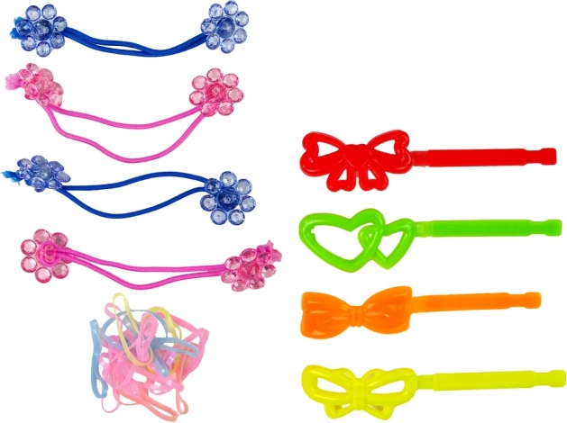 20 sima hajgumi, 4 virágos hajgumi és 4 csat segít fonatokat, copfokat és a színes tincsek játékos kombinációit elkészíteni.