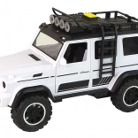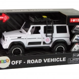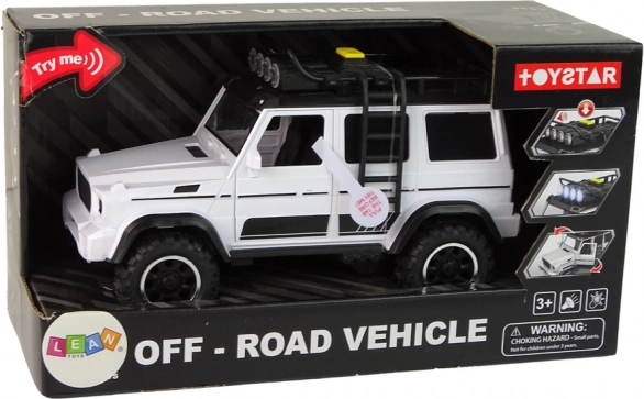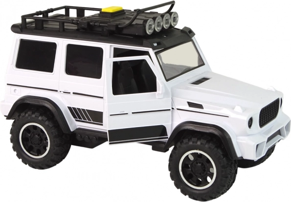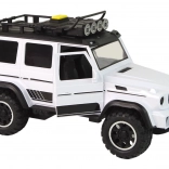 A valósághű, fehér terepjáró 1:14 méretarányban rengeteg szórakozást nyújt a frikciós meghajtásnak, a fényhatásoknak és a hangoknak köszönhetően. A nyitható ajtók, a tetőlámpák és a praktikus csomagtartó létrával támogatják a kreatív játékot otthon és a szabadban is. A nagy kerekek különböző felületekkel birkóznak meg, a tetőn lévő interaktív gombbal pedig különféle hanghatások válthatók.