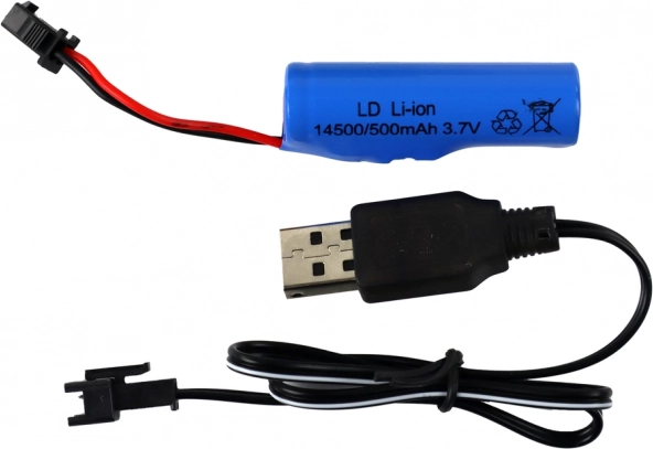 A csomag része egy 3,7 V-os Li-ion akkumulátor USB töltéssel. A fény- és hangeffektek fokozzák a vezetési élményt.