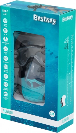 Próbálja ki a forradalmi Bestway Flowtech sznorkelező maszkot teljes arcot fedő designnal, amely természetes légzést biztosít. Ez a maszk 14 éves kortól felnőttek számára megfelelő, és kiváló kényelmet nyújt a puha szilikon konstrukcióval, amely alkalmazkodik az arc formájához.