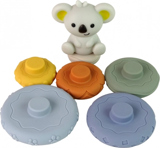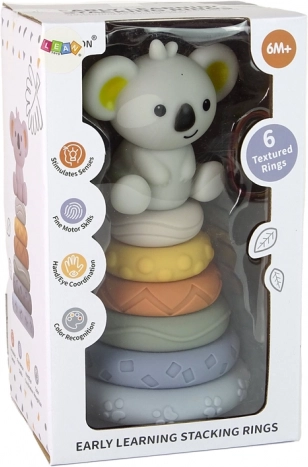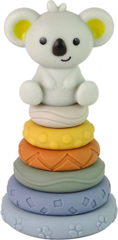Szilikon piramis koalával szórakoztató és biztonságos játékot kínál csecsemők számára. A játék több színes és textúrált gyűrűt tartalmaz, amelyeket gyermeke könnyen megragadhat, forgathat és különböző konfigurációkban építhet, ezzel javítva a kéz-szem koordinációjukat és logikus gondolkodásukat.