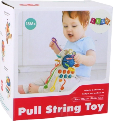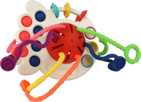 A szórakoztató érzékszervi játék nemcsak a színes szálak egyik végéről a másikra történő húzását teszi lehetővé, hanem a buborékok nyomogatását és mozgatását is. Különféle játékelemeket kombinál, amelyekkel másfajta szórakozást élhet meg, miközben fejleszti finommotoros készségeit.