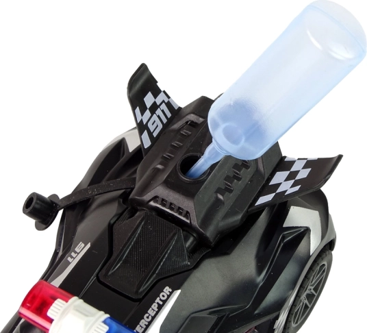 Elég a mellékelt palackkal vizet tölteni, és az autó menet közben látványos vízgőzt bocsát ki, ami fokozza az igazi rendőrségi akció érzetét.