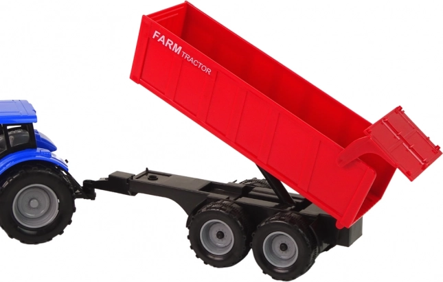 A piros pótkocsi könnyen leválasztható, a plató pedig billenthető, így a gyerekek úgy szállíthatják és kiönthetik a „rakományt”, mint az igazi gazdák.