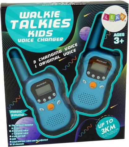 A kék színű, szórakoztató gyerek walkie-talkie-k interaktív kommunikációt biztosítanak akár 3 km távolságig. 16 csatornát kínálnak, hangszín-váltást (női, férfi, robot), egyszerű TALK gombos vezérlést és csengő funkciót. Ideális kis felfedezőknek, kültéri és beltéri játékhoz egyaránt.
