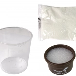 A mérőpohár, a kristályos por és a fa alapja lehetővé teszi, hogy az egész kísérletet biztonságosan és kényelmesen elvégezd otthon.