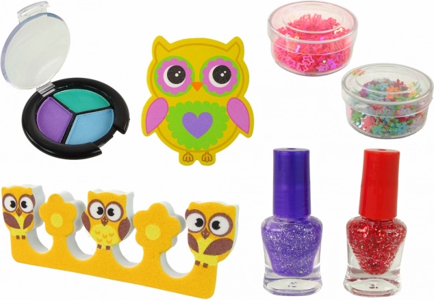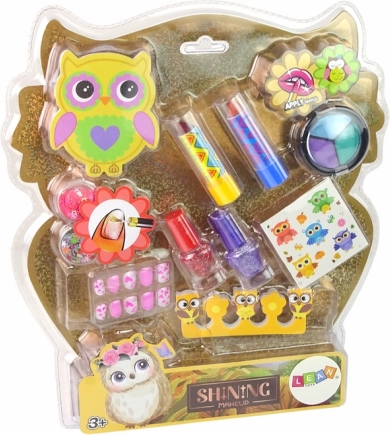 Kreatív készlet sminkeléshez és körömdíszítéshez Bagoly minden szükséges eszközt biztosít a varázslatos atmoszféra és stílusos dizájnok megteremtéséhez. Tartalmaz körömlakkokat, körömreszelőt, dekoratív matricákat és sok más érdekes elemet.