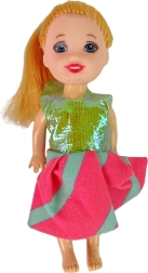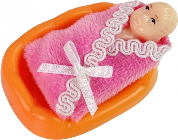A készlet része egy kicsi baba – szőke hajú és kék szemű kislány. Az egész készlet gazdag kiegészítőkkel van ellátva, mint például fésű, csésze, cumi, fürdőkacsa, üvegcse, plüss mackó és etetőszék. Ideális ajándék a gyermek kreativitásának és gondozói készségeinek fejlesztésére.