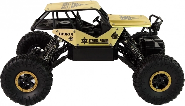 A modell a dobozból kivéve azonnal menetkész – a csomag része az akkumulátor kábellel. Kompakt méreteinek (26 × 14 × 17 cm) köszönhetően könnyű vezetni és hordozni. Remek választás 6 éves kortól mind gyerekeknek, mind felnőtteknek, akik szórakoztató terepes RC autót keresnek látványos fekete–arany megjelenéssel.
