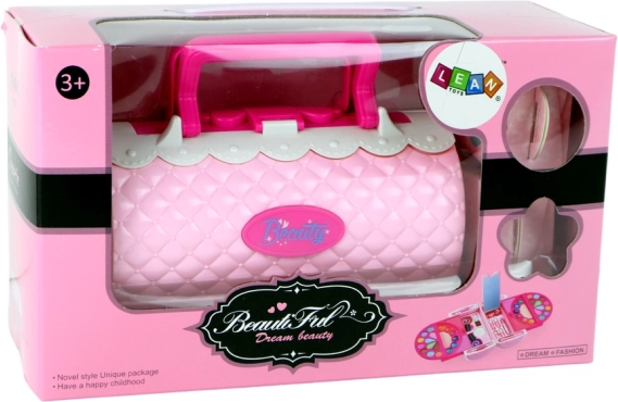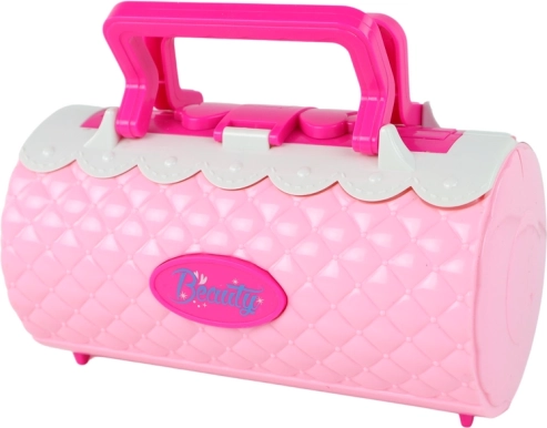 Könnyű, hordozható bőrönd kényelmes fogantyúval, amely lehetővé teszi a sminkelést és a játékot bárhol – otthon, látogatóban vagy nyaraláskor.