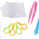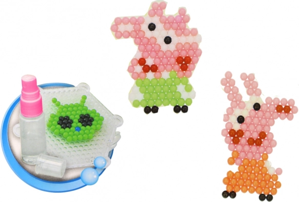 Kreatív vizes gyöngykészlet kis művészeknek 8 ragyogó színnel, két sablon alaplappal (négyzet és hatszög), permetezővel és kiegészítőkkel az egyszerű alkotáshoz. Elég vízzel bepermetezni, és a gyöngyök vasalás nélkül összetapadnak. Remek választás a finommotorika fejlesztéséhez, a képzelet kibontakoztatásához, valamint medálok és cuki malacos motívumok készítéséhez.