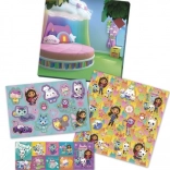 Ez az ajándékdoboz mindent tartalmaz, amire a gyerekeknek szükségük van az alkotáshoz és a játékhoz. A 3 ív matrica a Gabby’s Dollhouse népszerű sorozatának számos motívumát kínálja, amelyeket a mellékelt karton díszletekre vagy saját alkotásaikra ragaszthatnak.