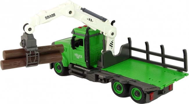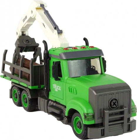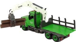 Ez a részletgazdag kidolgozású erdészeti faáruszállító teherautó a valódi gépek világába repíti a gyerekeket. A nyitható ajtók, a mozgó elemek és a forgatható fehér markoló megkönnyítik a rönkök fel- és lerakását, miközben a lendkerék és a nagy kerekek könnyedén megbirkóznak a „terepviszonyokkal” a gyerekszobában. A színes fények és a gombokkal aktiválható négyféle hang tovább fokozza a valósághű játékélményt.