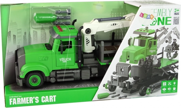 A csomagban egy csavarhúzó is található 2 bittel a jármű csavarozásához és szétszereléséhez – a gyerekek gyakorolhatják kézügyességüket és műszaki gondolkodásukat. A tartós műanyag hosszú élettartamot biztosít. A jármű méretei: 35 × 22 × 9,5 cm, a fahasáb hossza: 13 cm. A játék CE tanúsítvánnyal rendelkezik és megfelel az EN71 szabványnak, 3 éves kortól ajánlott.