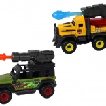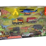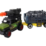 Az első elemek két vontatmányos jármű, amelyek lehetővé teszik a dinoszauruszok terepen történő szállítását. Mindegyik forgó kilövővel van felszerelve, ami akciódús elemet visz a játékba. Gondosan kidolgozott részleteik még érdekesebbé teszik a játékot.