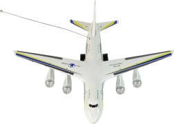 A repülőgép három AA 1,5 V elemmel működik, a távirányító pedig két AAA 1,5 V elemmel. (Az elemek nem tartozékok)