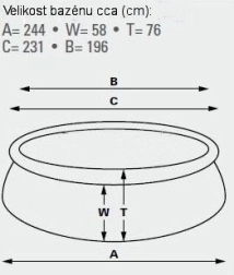 Önhordó medence. Méretek: 183 cm (felső kerület 145 cm) x 51 cm. Vízszint magassága 41 cm. Kapacitás 900 l.