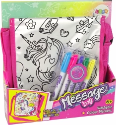 Ez a bájos, egyszarvús kézitáska a kreatívkodást igazi szórakozássá varázsolja. A gyerekek a táskát tartósan kiszínezhetik saját elképzeléseik szerint, és büszkén viselhetik iskolába, kirándulásra vagy barátokhoz. Az élénk színű filceknek köszönhetően a tervezés egyszerű, játékos és motiváló.