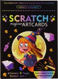 Ez a varázslatos szett órákon át tartó alkotó szórakozást nyújt a gyerekeknek. A csomagban 9 kaparható kép található, amelyekről a fekete réteg eltávolítása után színes boszorkányos motívumok bukkannak elő. Az egyszerű technika támogatja a türelmet, a koncentrációt és a kreativitást.
