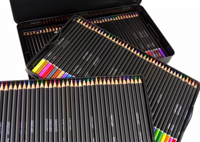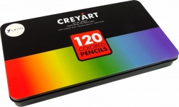Teljes készlet kreatív alkotáshoz: 120 darab művész színesceruza elegáns fém tokban, 3 tálcában, tálcánként 40 darabbal. A ceruzák hossza 17 cm, fekete lakkozással a kényelmes fogásért. Praktikus rendszerezés, könnyű hozzáférés az elasztikus pántoknak köszönhetően, CE-tanúsítás és EN71-megfelelőség. Alkalmas 3 éves kortól és felnőtteknek is.